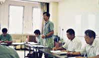 | ヒアリングを行う千頭助教授(中央) |