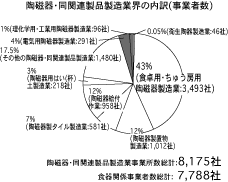 陶磁器業界の内, セラミック製品として食器・建材を生産する事業者総数は 8,175 社であり,