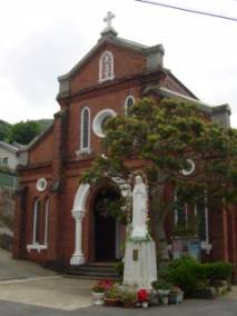レンガ造りの青砂ヶ浦カトリック教会。どこの教会も自由に見学できる。 |