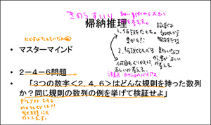 プレゼンテーション資料として前方スクリーンに提示される資料の上に手書き入力により講義内容を追記する。