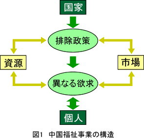 計画経済のもとで,中国社会において都市社会に限定された国家を主とした排除的福祉を実施した.市場経済への展開に伴い,また沿海地域へ傾斜する開放政策により,地域間の経済の格差がますます広がった.その結果,計画経済から残された都市と農村との格差,また,開放政策による地域間の格差,さらに,特定の地域における階層の間の所得の格差という三つの格差が中国の高齢者福祉事業を考察する際,重要な前提となっている.約一億の高齢者人口を抱える中国の高齢者福祉事業には包括的(inclusive)理念よりも,寧ろ排除的(exclusive)的な手法が取られ,政策上にも大きな不公平が存在している.