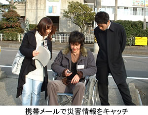 C 今回実験した聴覚障害,車椅子利用の災害弱者については,携帯電話によるメールを普段使い慣れているという点で,メールによる情報提供は有効な方式であることを確認した.ただし,災害弱者の障害タイプにより違いが発生するため,音声や手話テレビ電話等の併用を検討する必要がある.