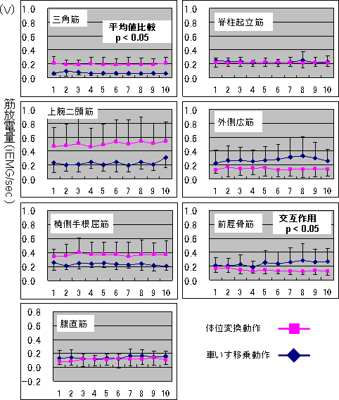 ![]() 図5 動作時の筋放電量 (iEMG/sec) の変化 |